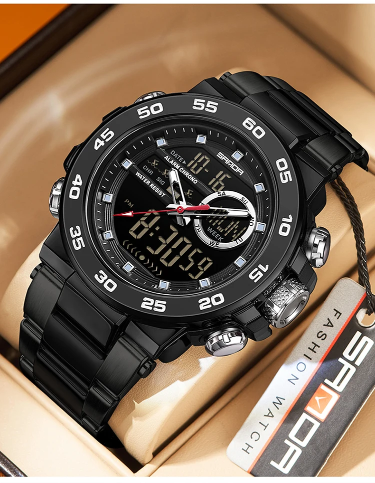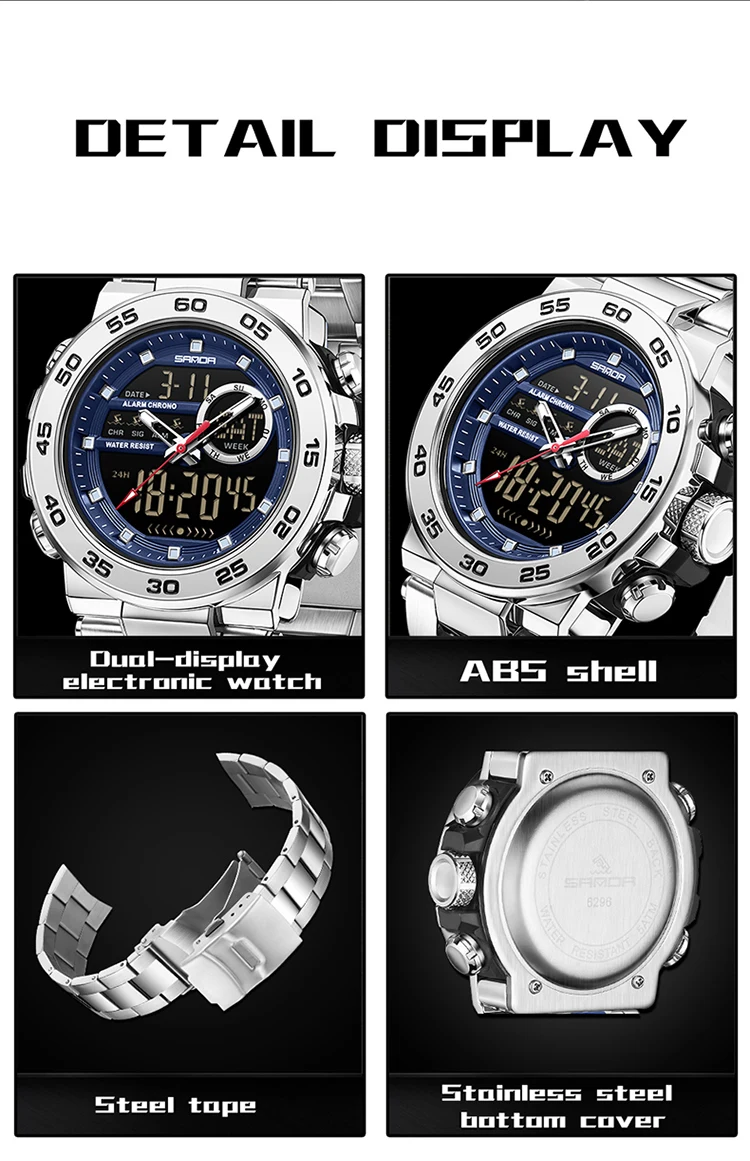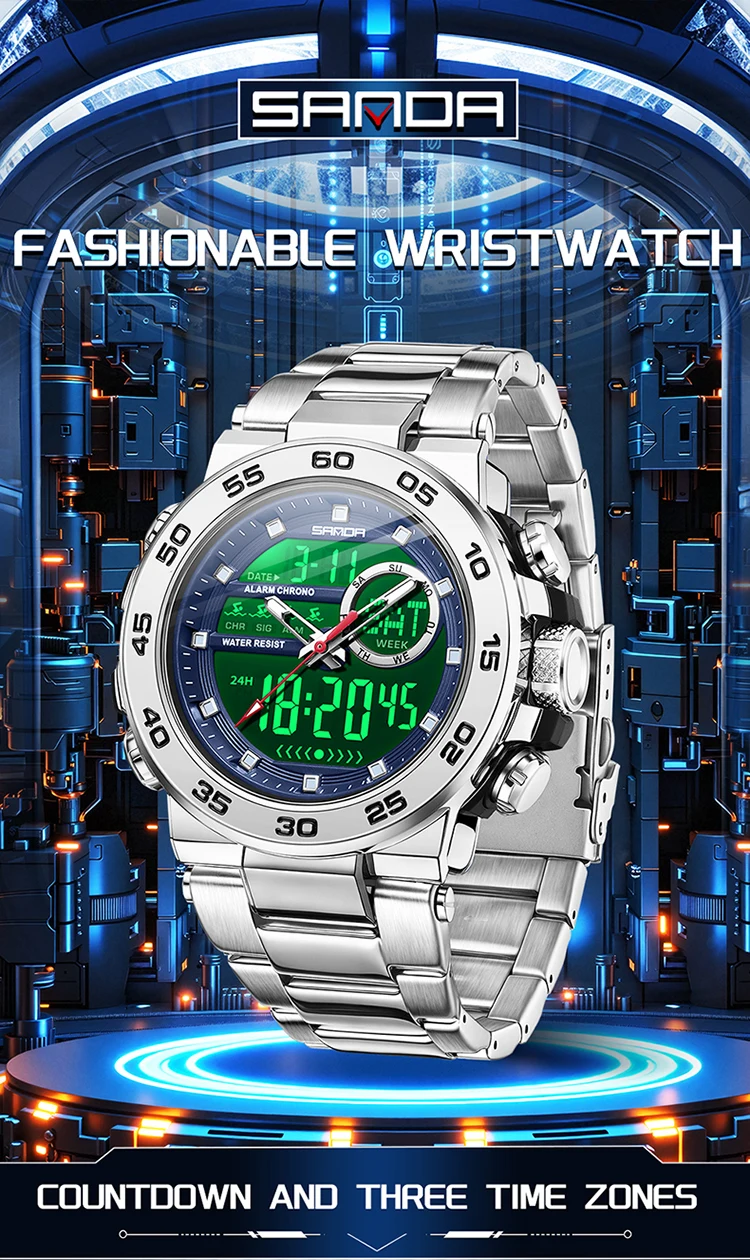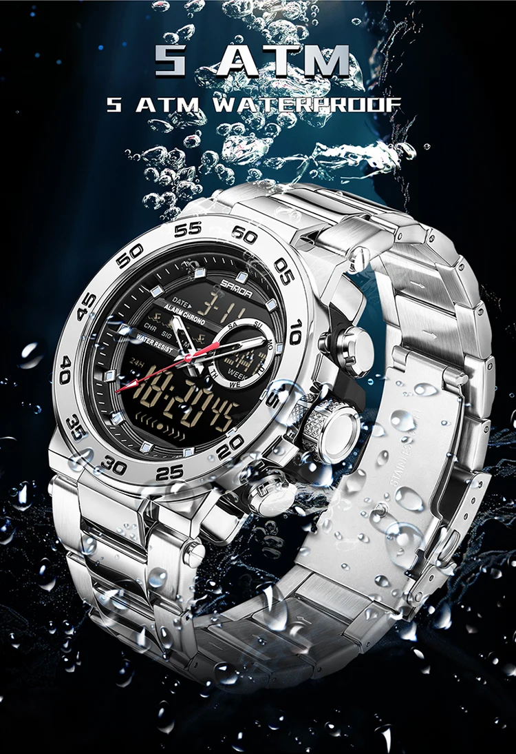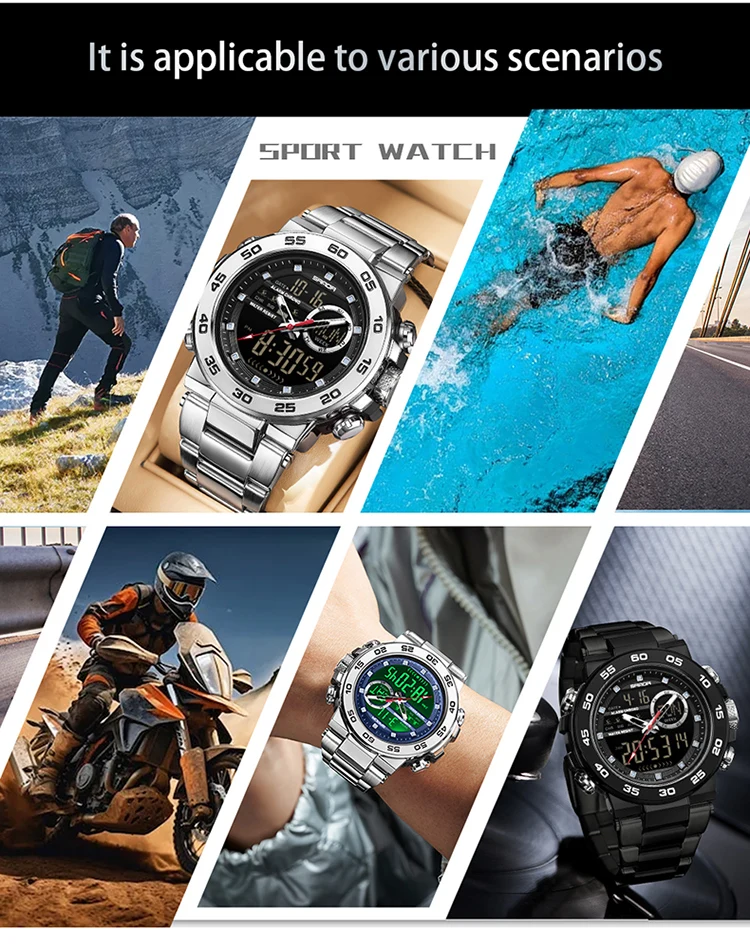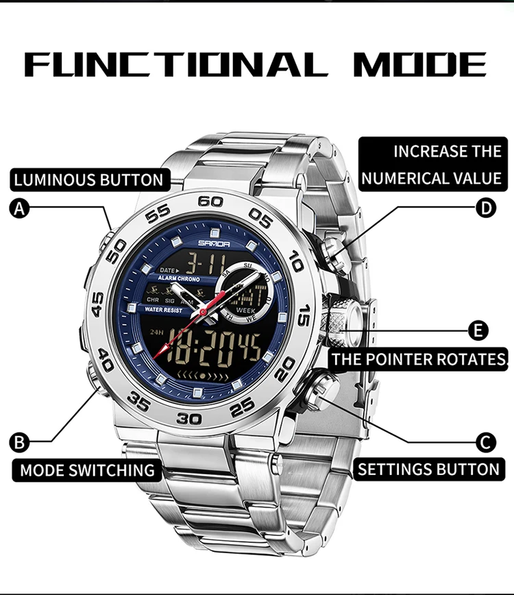 Feature: Stop Watch,Shock Resistant,Led Display,Luminous,Auto Date,Chronograph,Complete Calendar,Multiple Time Zone,Water-Resistance,Alarm,swim,Week Display